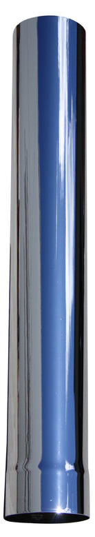Chrome Stack Straight Cut Non-Reduced 3". Expanded 3" (76mm) Inlet. Available in 1 length only. Approx 60" (1524mm) long. Designed to slide over pipework and then clamp into place (not into bung of muffler)
