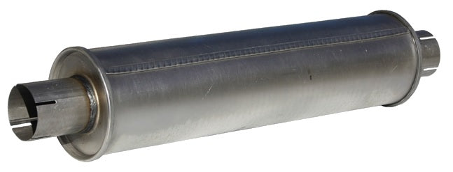 Flowtech's Mid-Range, or economy universal small truck muffler with a straight through internal design.