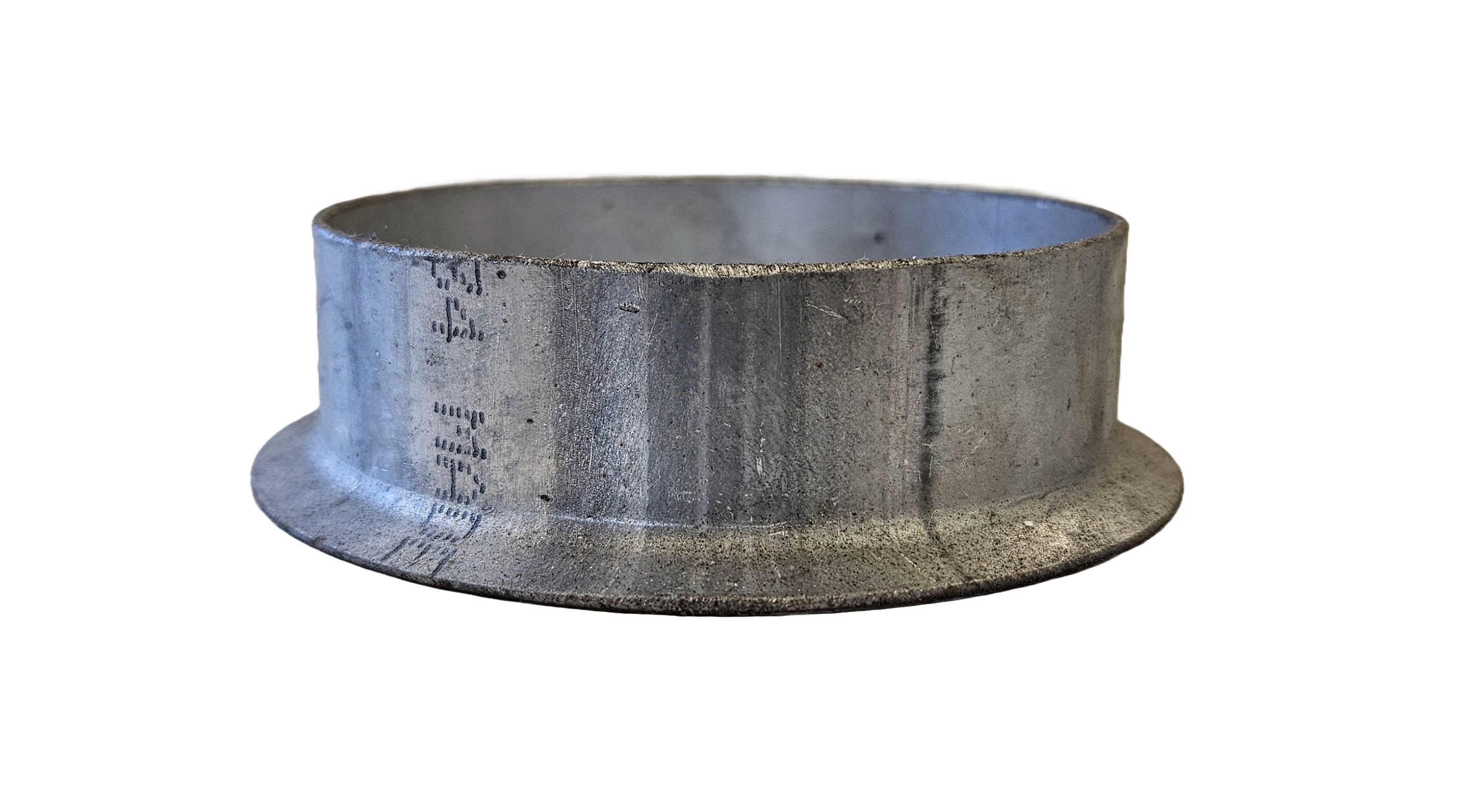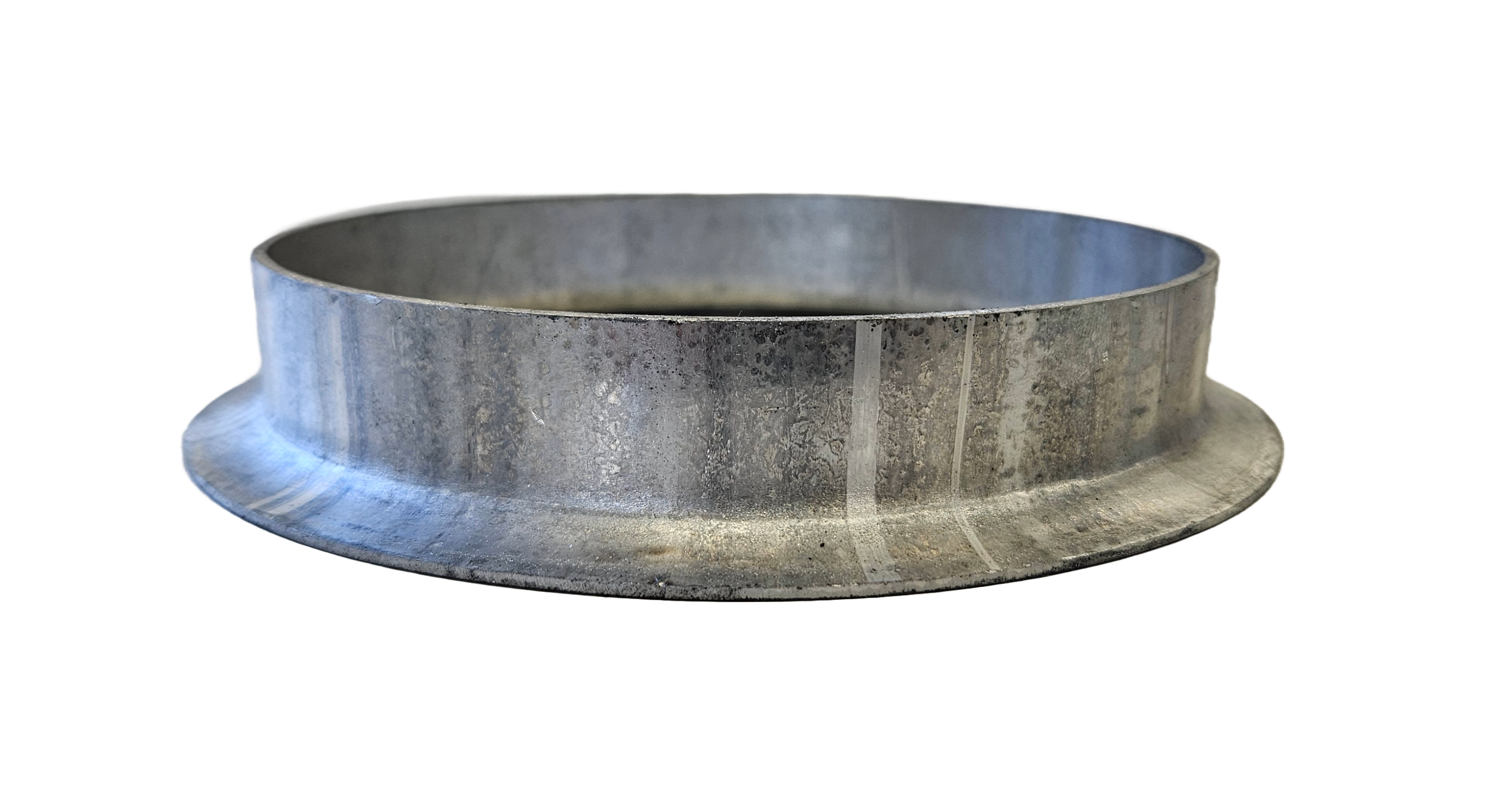 Lipped flanges are designed for use with V-band clamps. Standard 22° lip angle, plain (not expanded), in aluminised mild steel. Some sizes are available with shorter tube length (30mm vs 80mm).