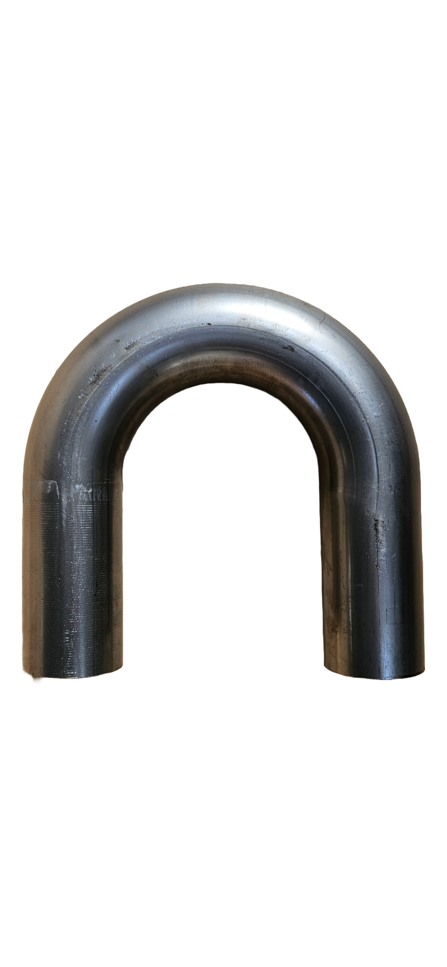 Mild steel mandrel bends, commonly used in exhaust fabrication or repair. No reduction in diameter when compared with press-bent options. Measured by the outside diameter (OD).