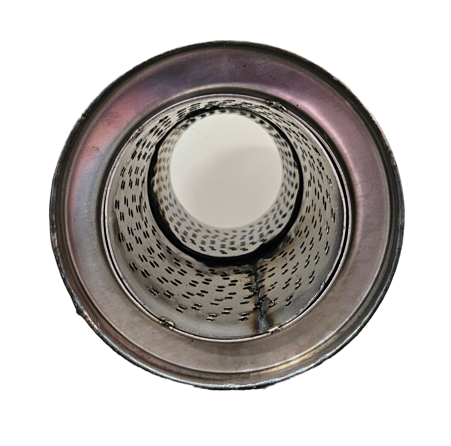 Universal Chambered Car Muffler/Resonator in Stainless Steel (non-polished). Chambered/Straight Through design but still high flow.