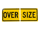 Hinged Oversize metal sign on Class 2 reflective. 2 pieces, with each piece measuring 600 x 450mm when unfolded.