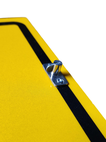 Galvanised steel backing, which is durable to the harsh road conditions we have in Australia. Comes complete with pre-attached T-Toggle anti-luce hardware for ease of attachment. 4 are supplied with each sign; 1 per side to hold sign closed, 1 per side to hold sign open (please note: first item photo shows a different hardware design - check following photos for supplied design).