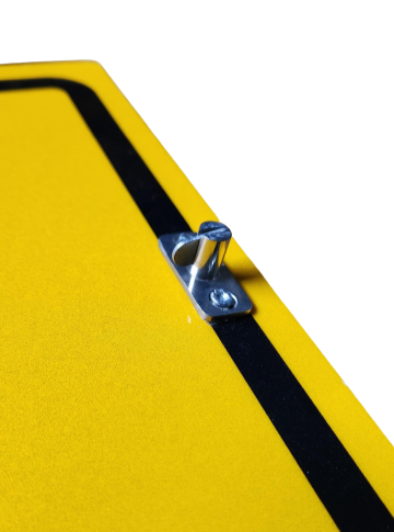 Galvanised steel backing, which is durable to the harsh road conditions we have in Australia. Comes complete with pre-attached T-Toggle anti-luce hardware for ease of attachment. 4 are supplied with each sign; 1 per side to hold sign closed, 1 per side to hold sign open (please note: first item photo shows a different hardware design - check following photos for supplied design).