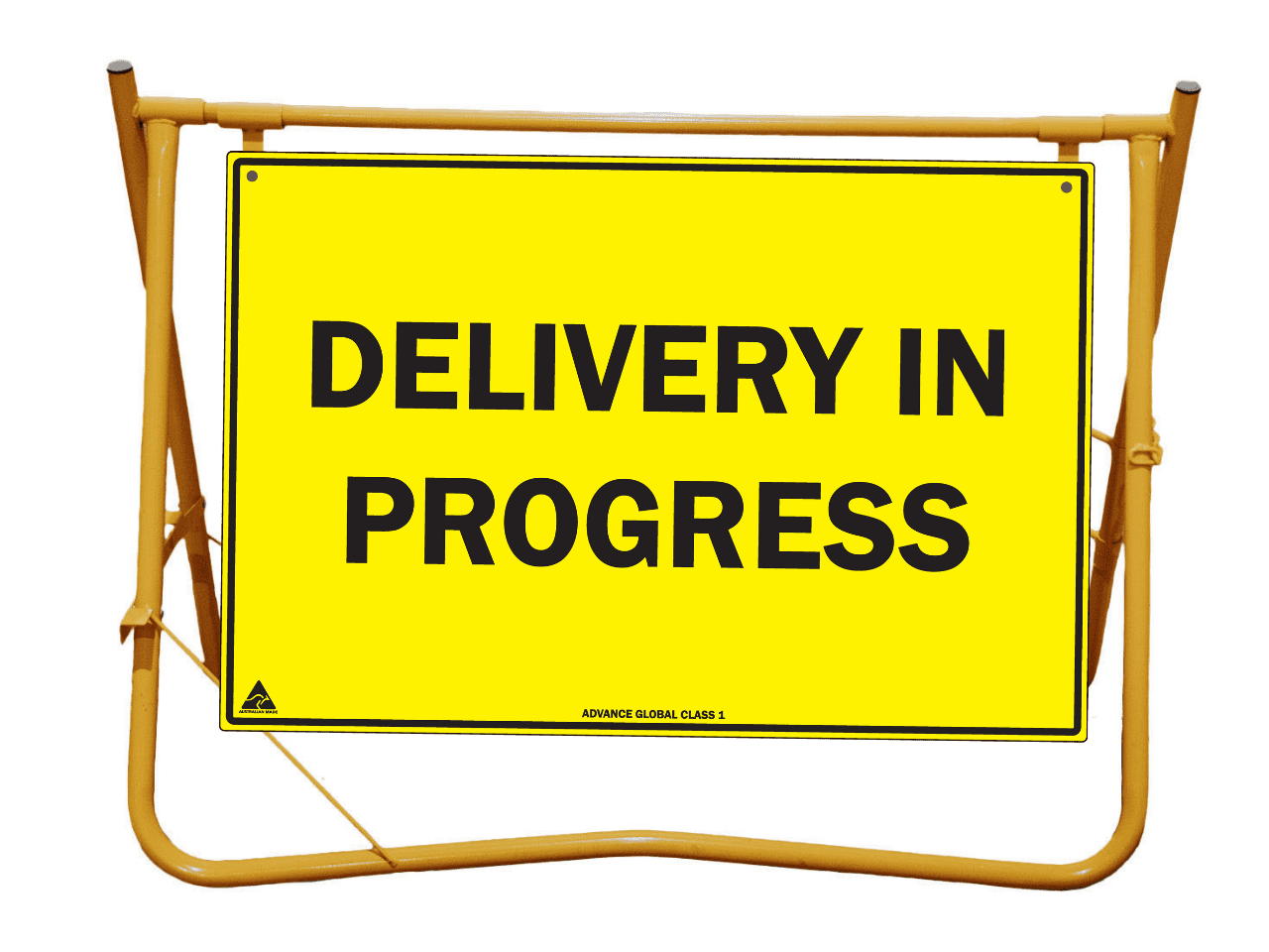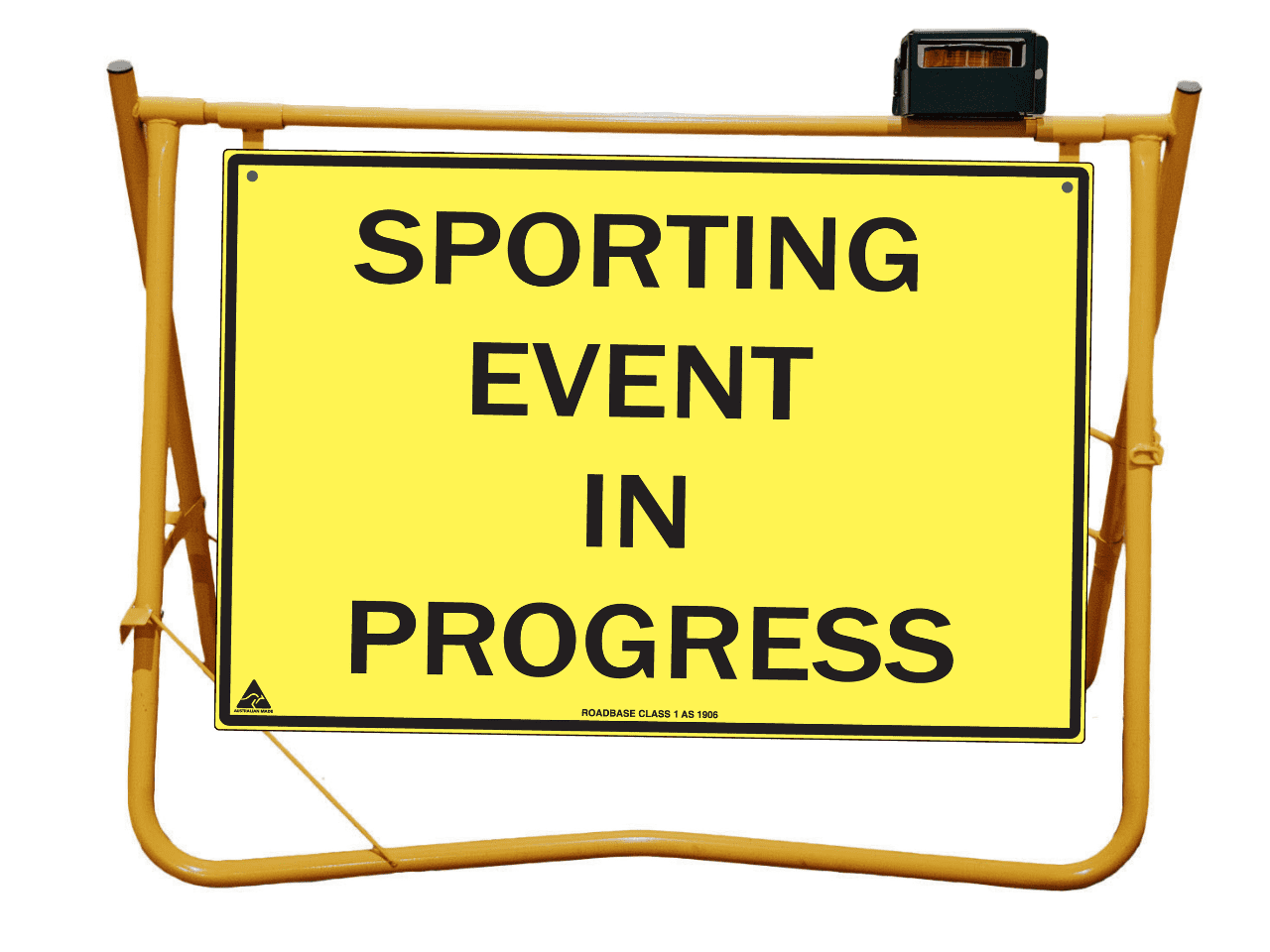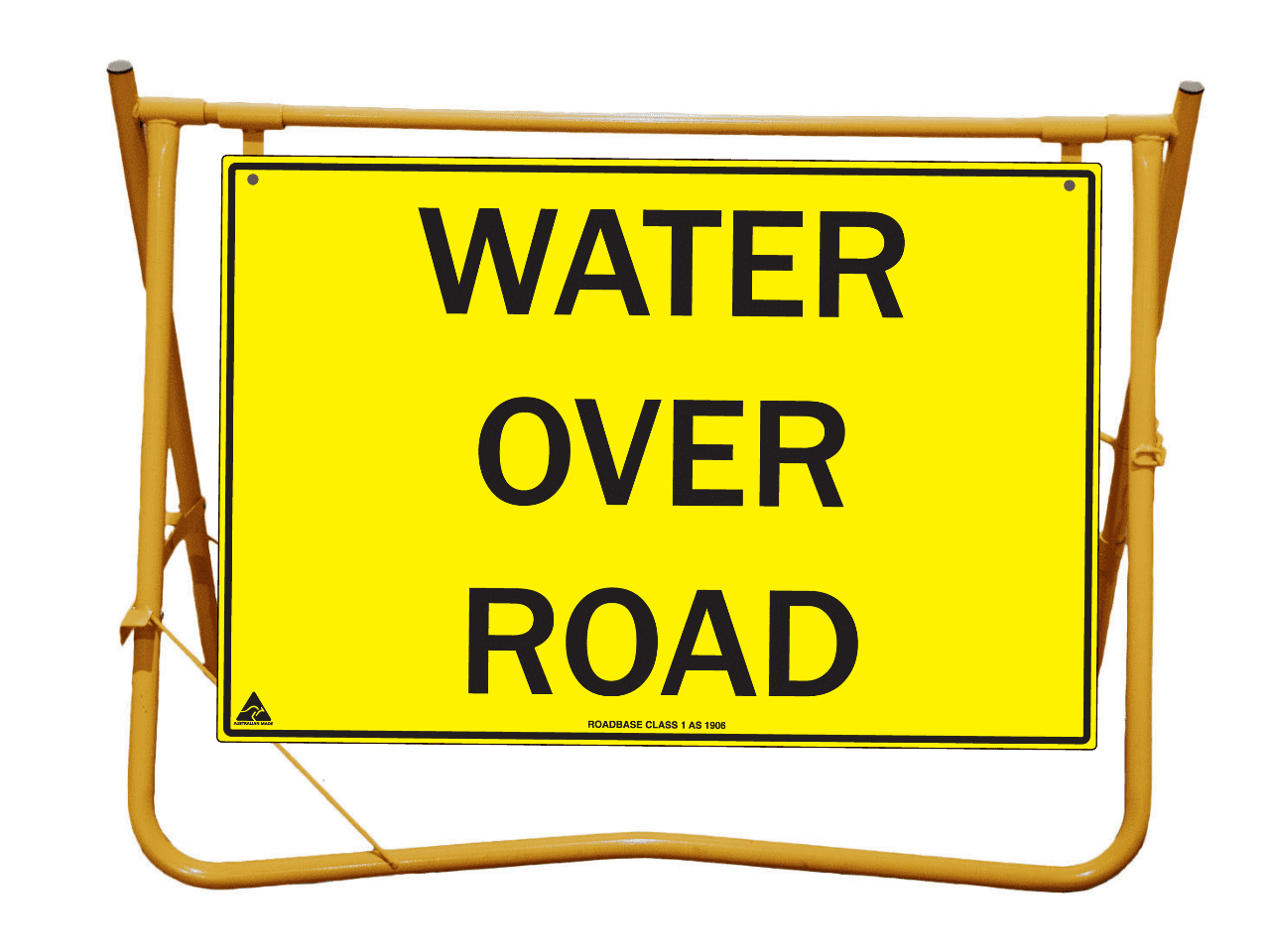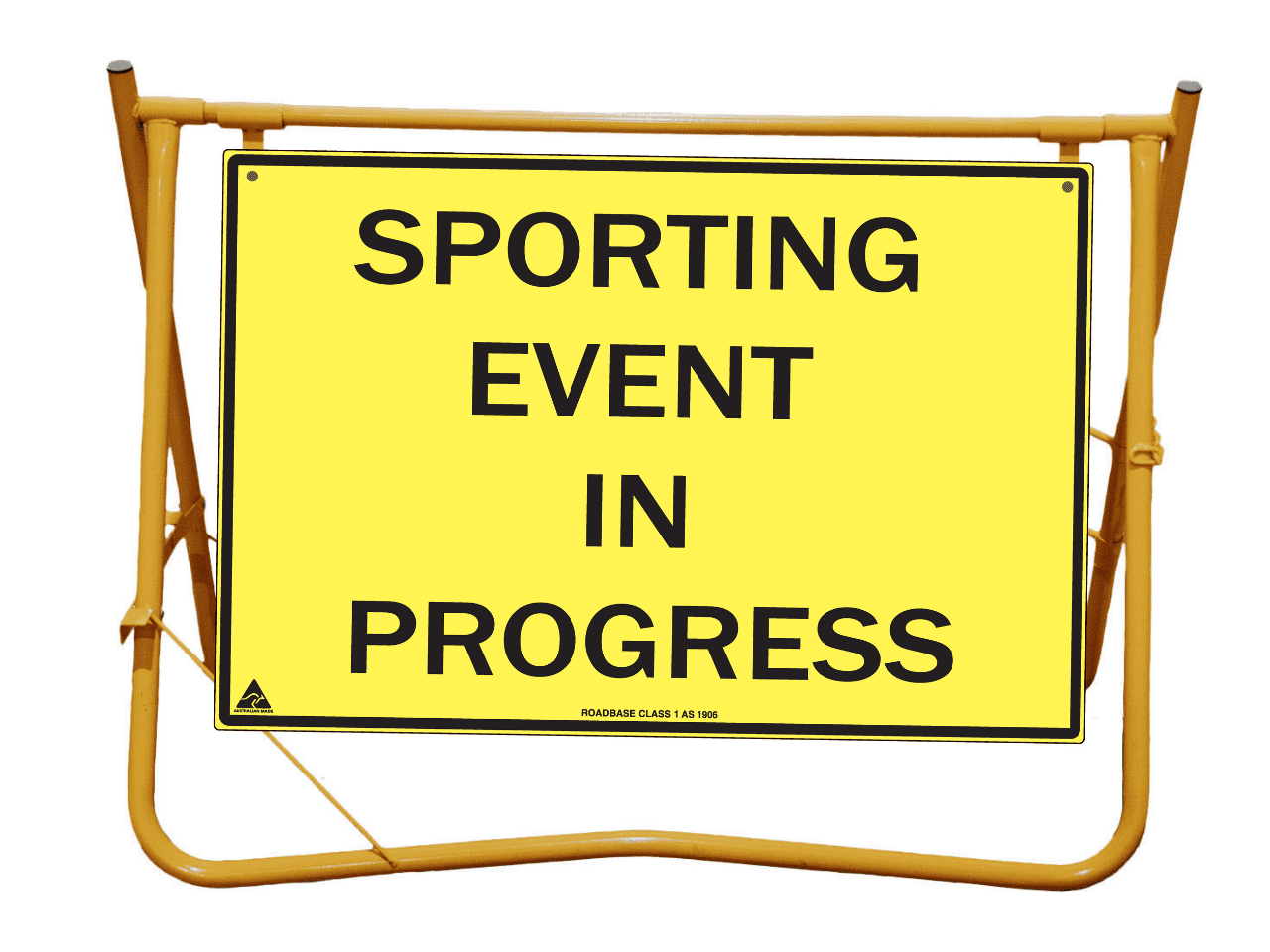 Yellow Swing Stand. Suited for displaying temporary signage such as roadworks, grass cutting, stock ahead, public events etc etc.