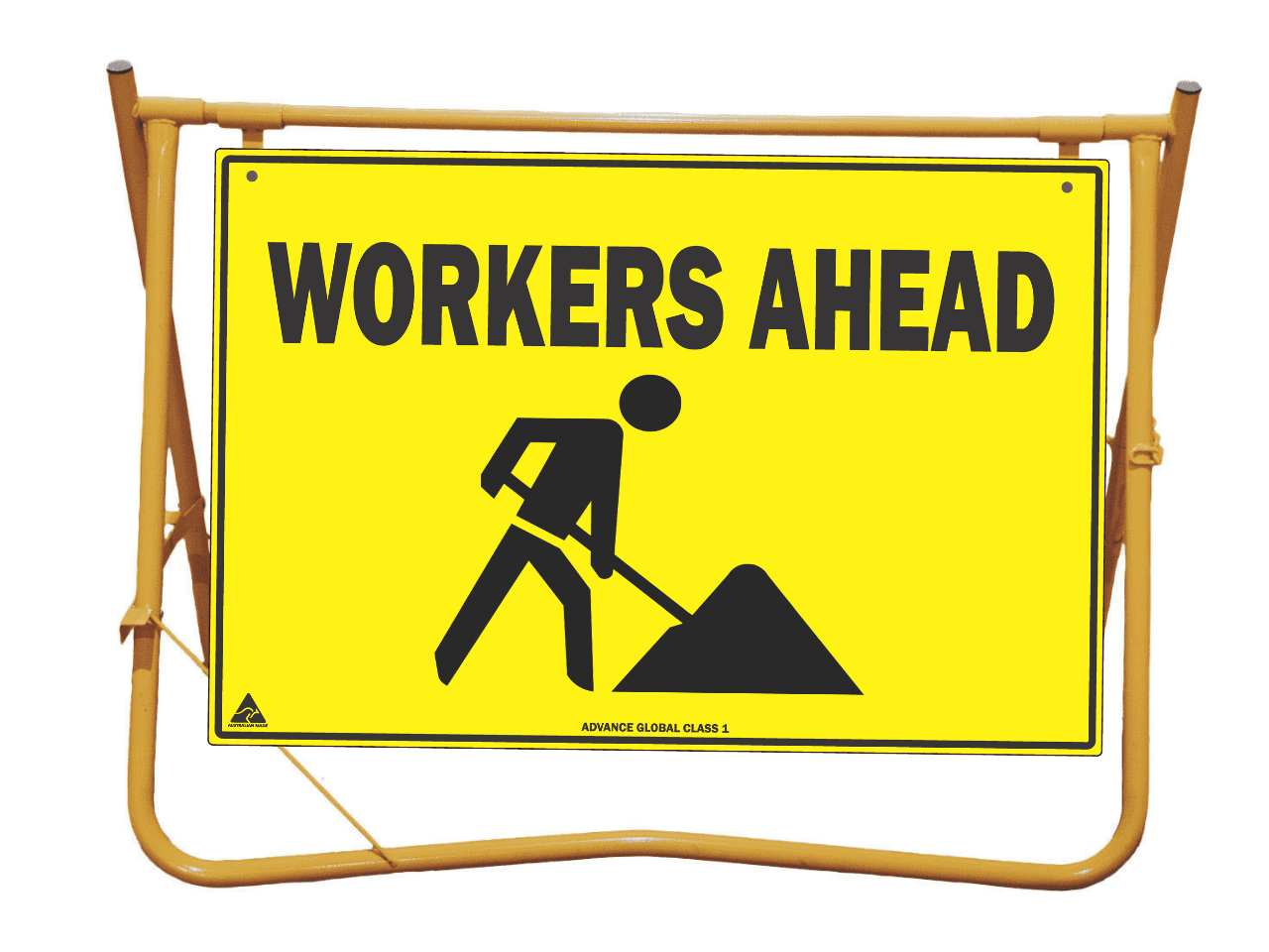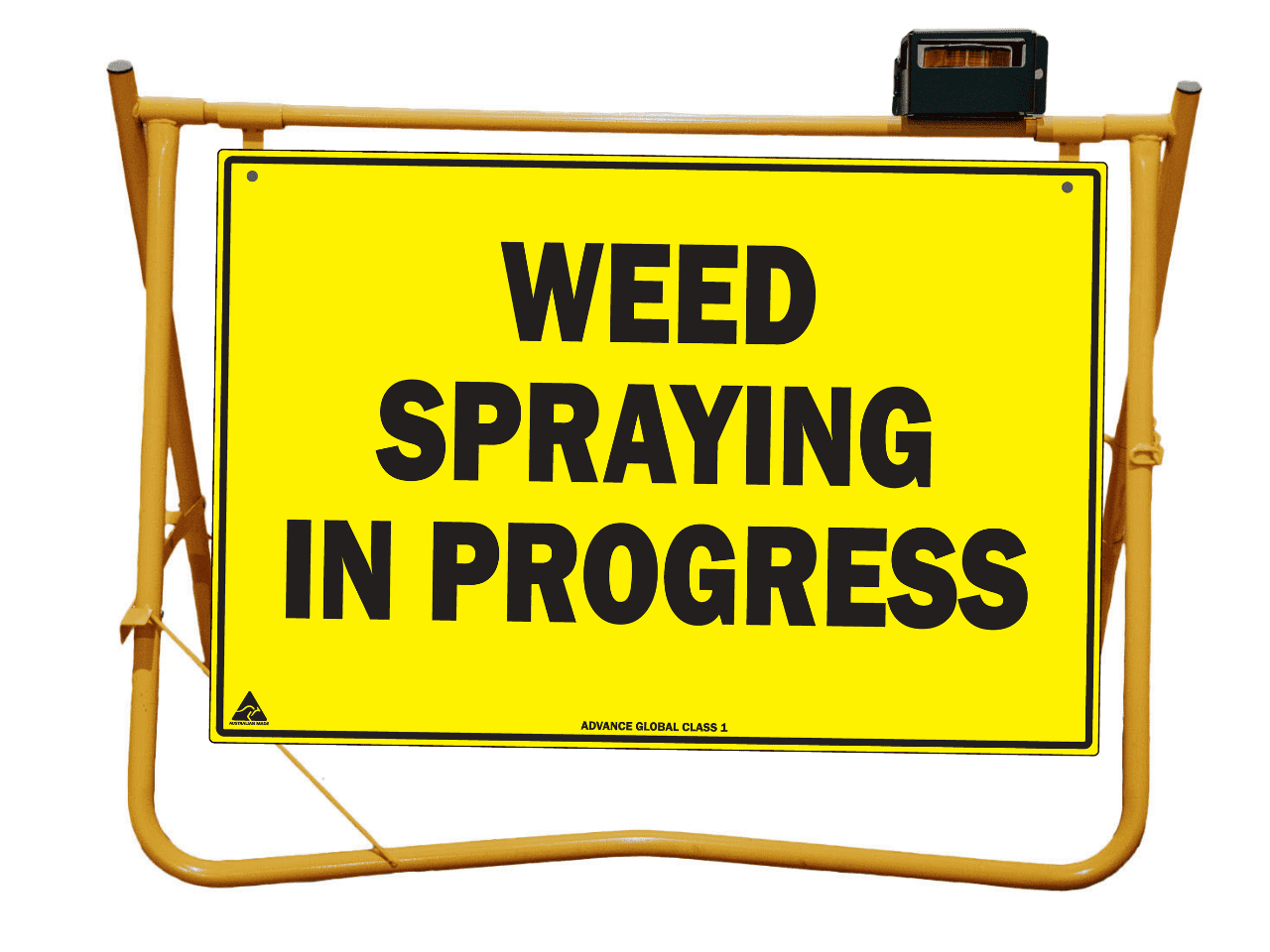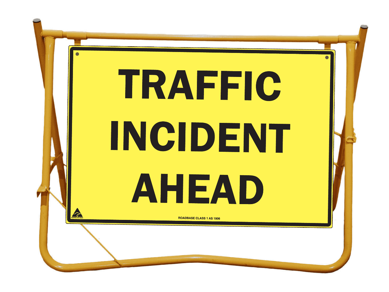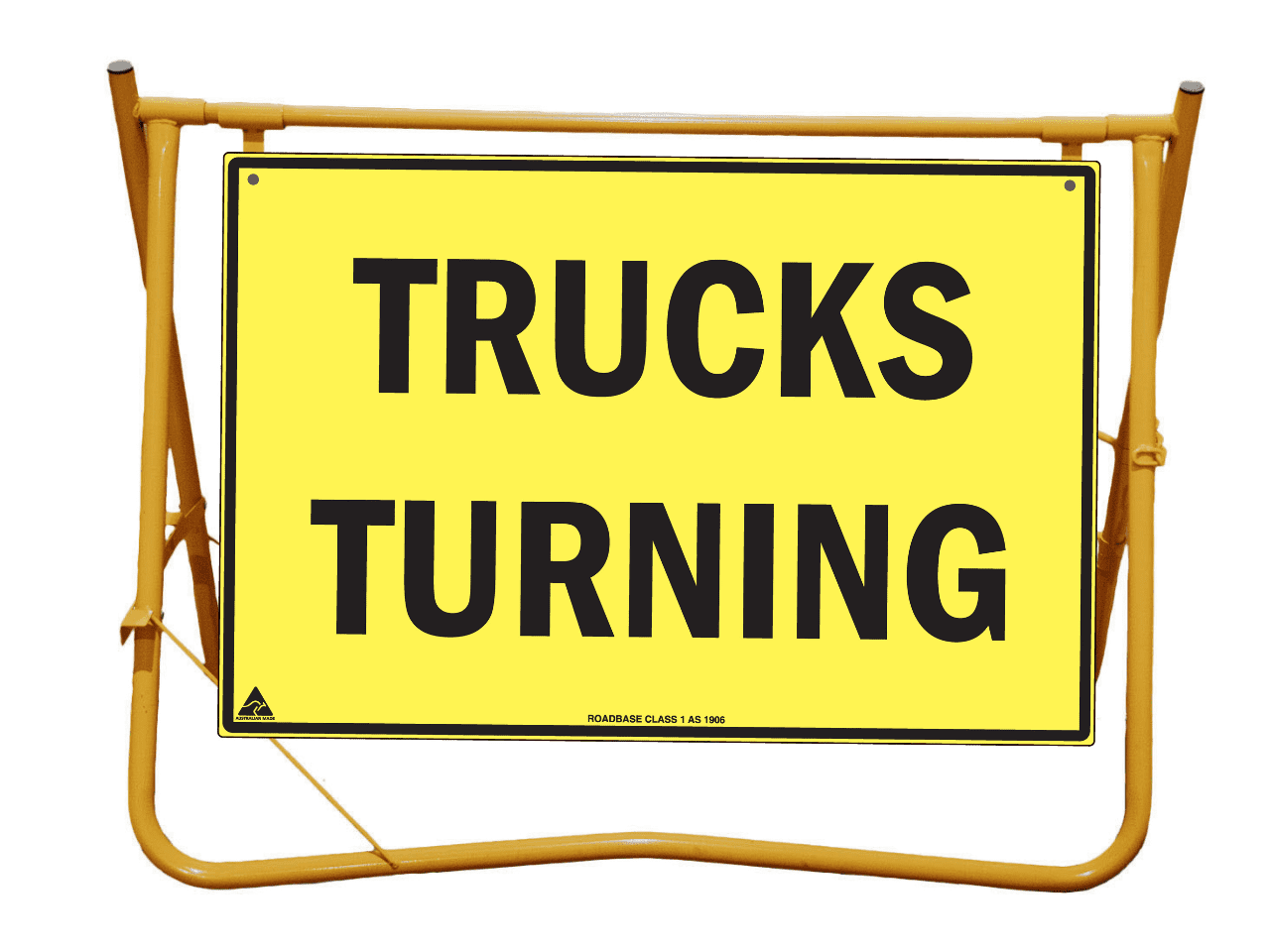 Yellow Swing Stand. Suited for displaying temporary signage such as roadworks, grass cutting, stock ahead, public events etc etc.