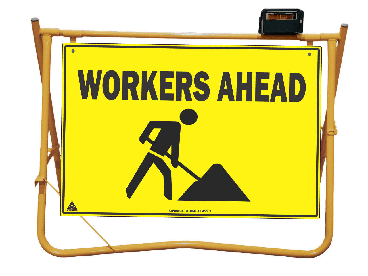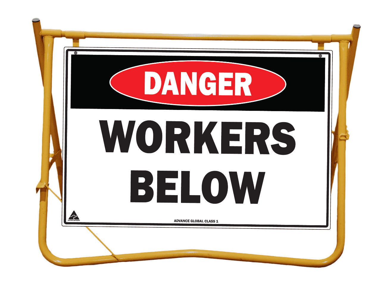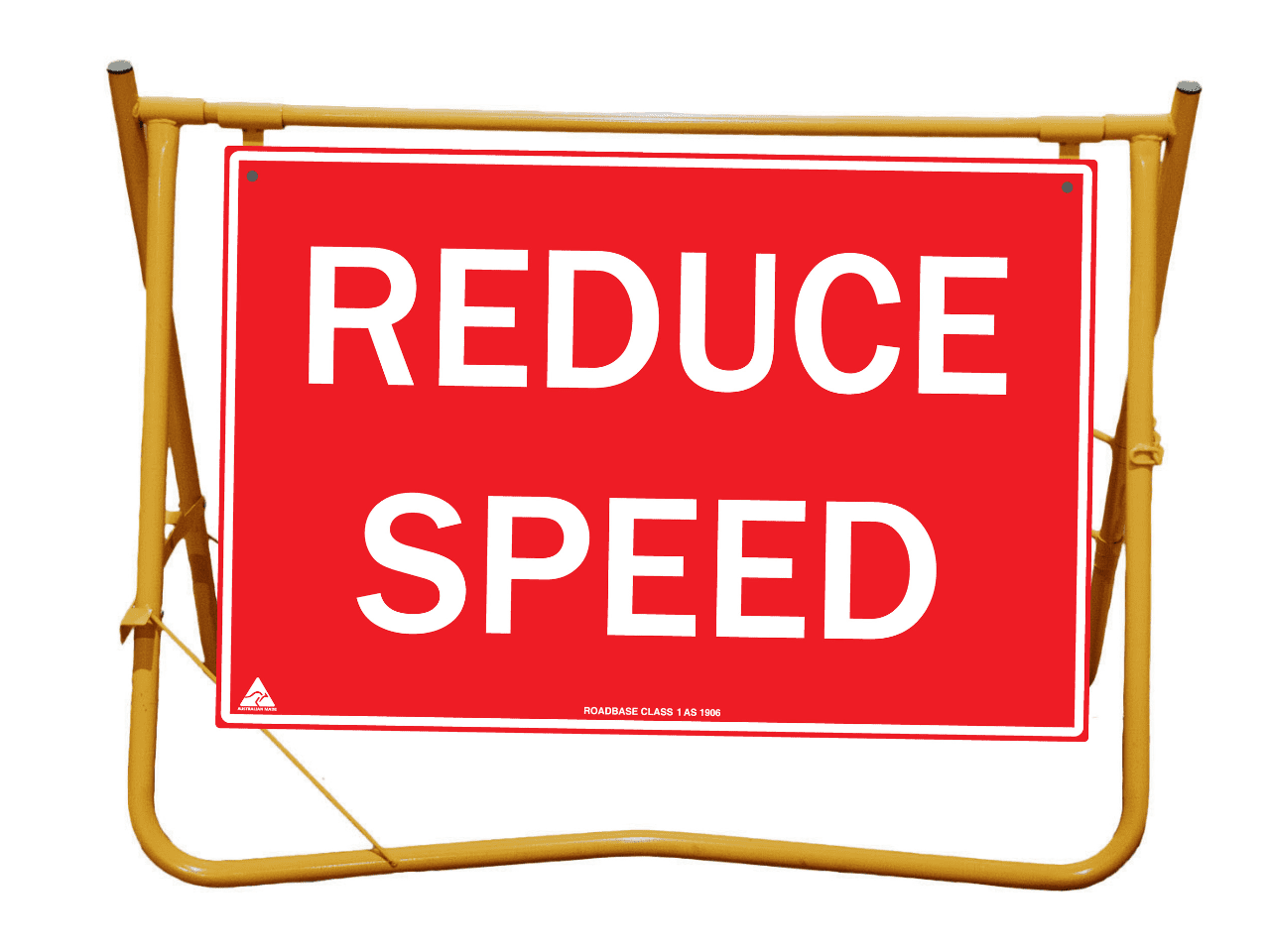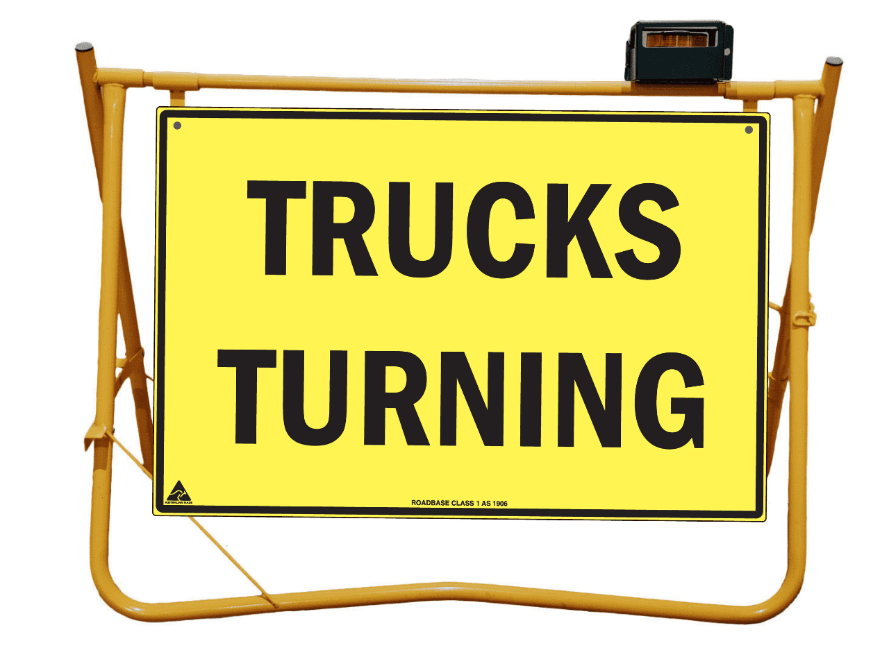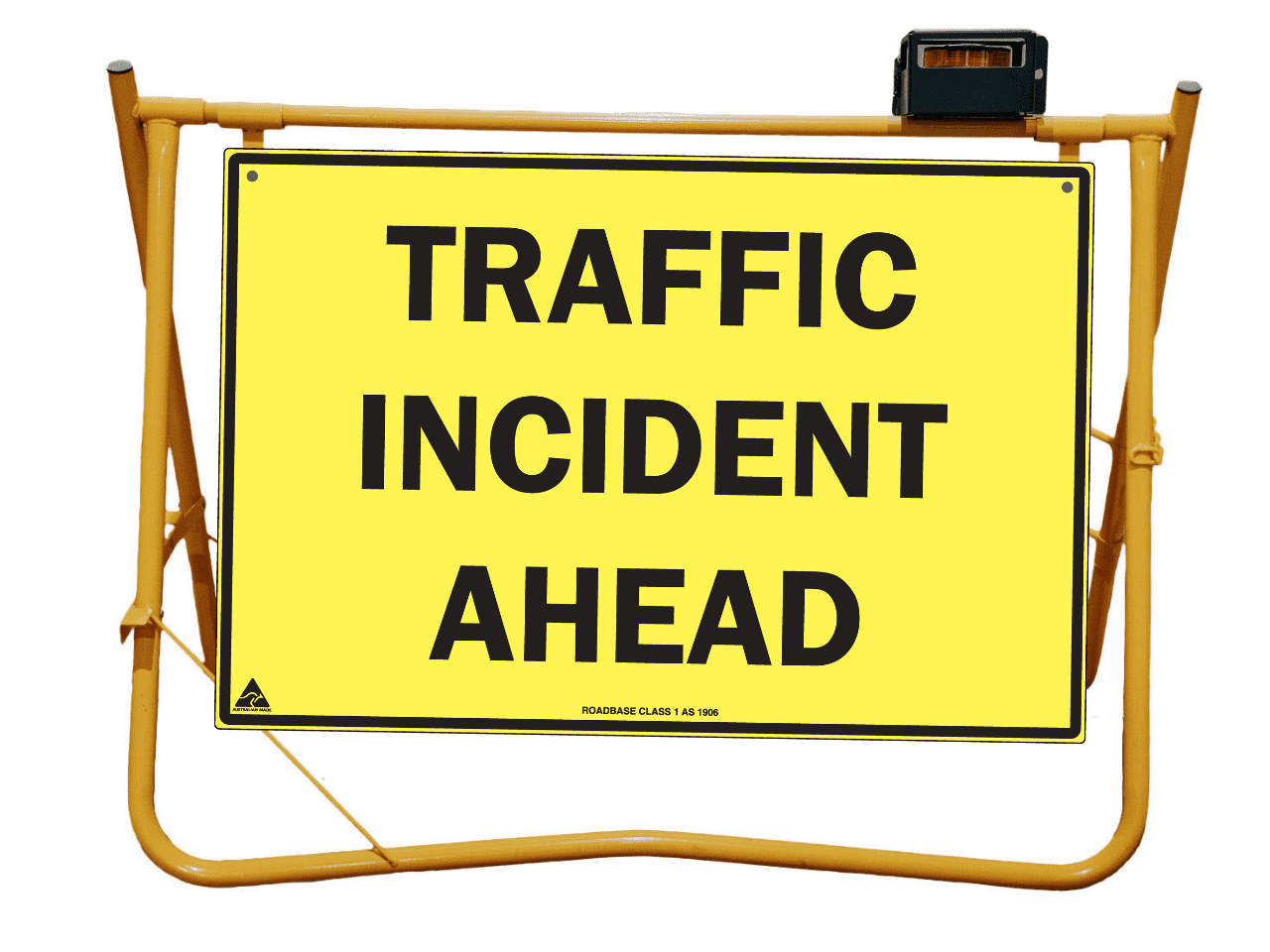 Yellow Swing Stand. Suited for displaying temporary signage such as roadworks, grass cutting, stock ahead, public events etc etc.