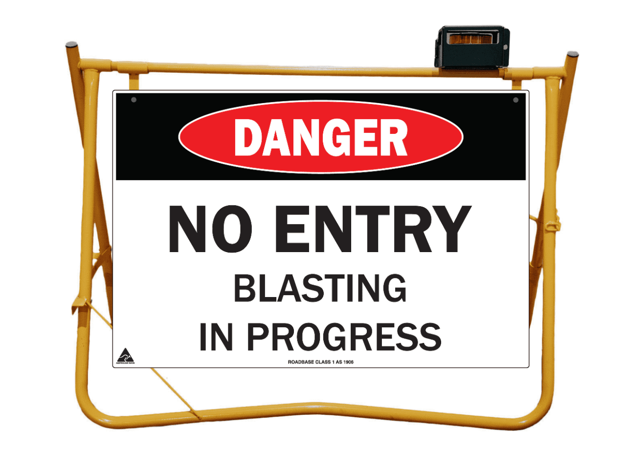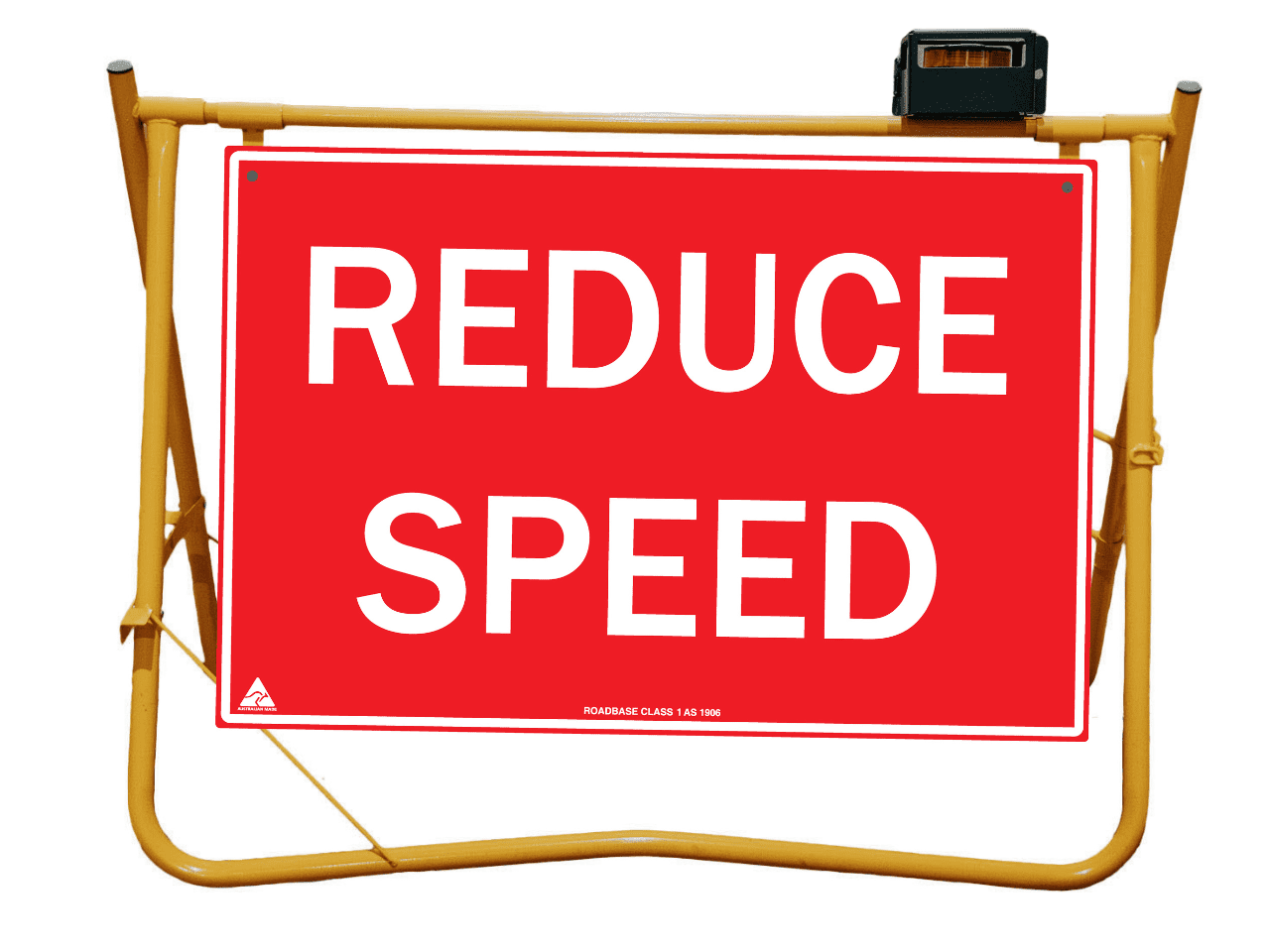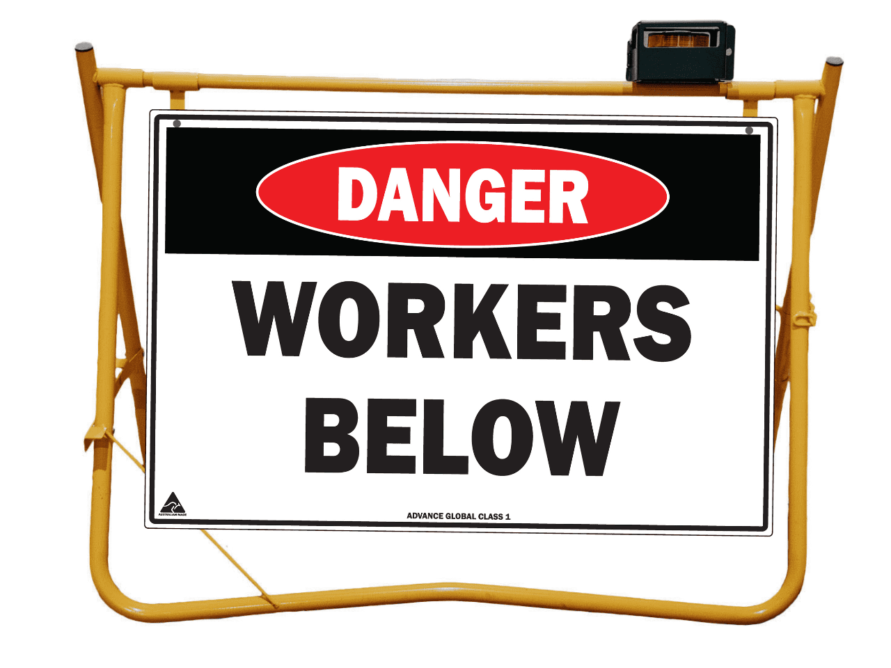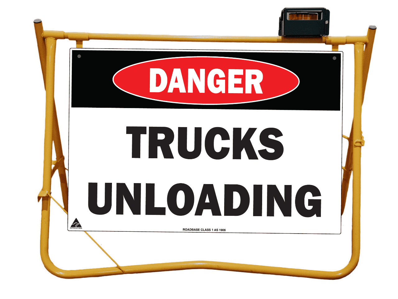 Yellow Swing Stand. Suited for displaying temporary signage such as roadworks, grass cutting, stock ahead, public events etc etc.