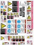 These machinery sticker sets are supplementary decal sheets designed to complement those originally supplied with your equipment. They feature all the commonly recognised risks and hazards required by local occupational health and safety (OH&S) regulations. Included are labels for crush zones, hot surfaces, pressurised systems, pinch points, rotating parts, knock-over and collision warnings, filler labels, and cab warnings. Everything you need to complete your risk assessment and ensure your machinery complies with local OH&S standards.