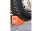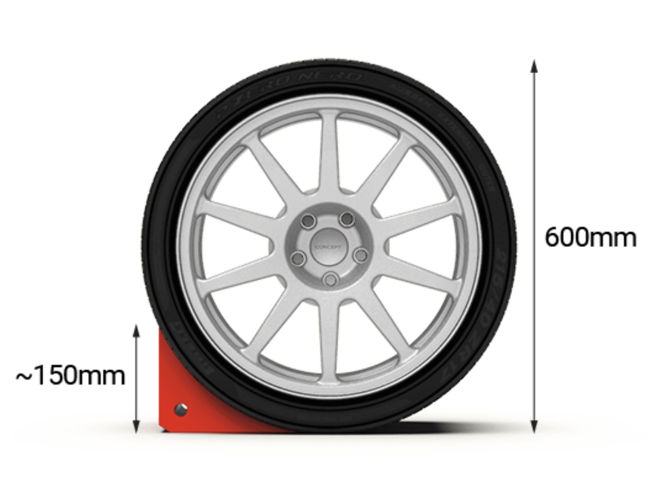 - The height of the wheel chock should be 25% of the height of your wheel and fit snugly against your tyre. For example, a wheel 600mm high, would require a wheel chock of 150mm.